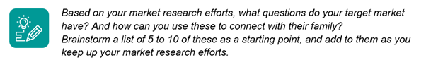 This is about understanding your target client’s situation well enough to be able to then map out what could solve the unique challenges they are facing from a family and intergenerational perspective.