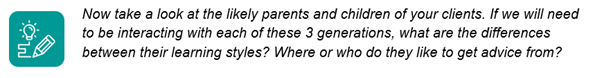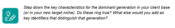 • We often engage better with our own generation, so consider involving younger team members in client interactions